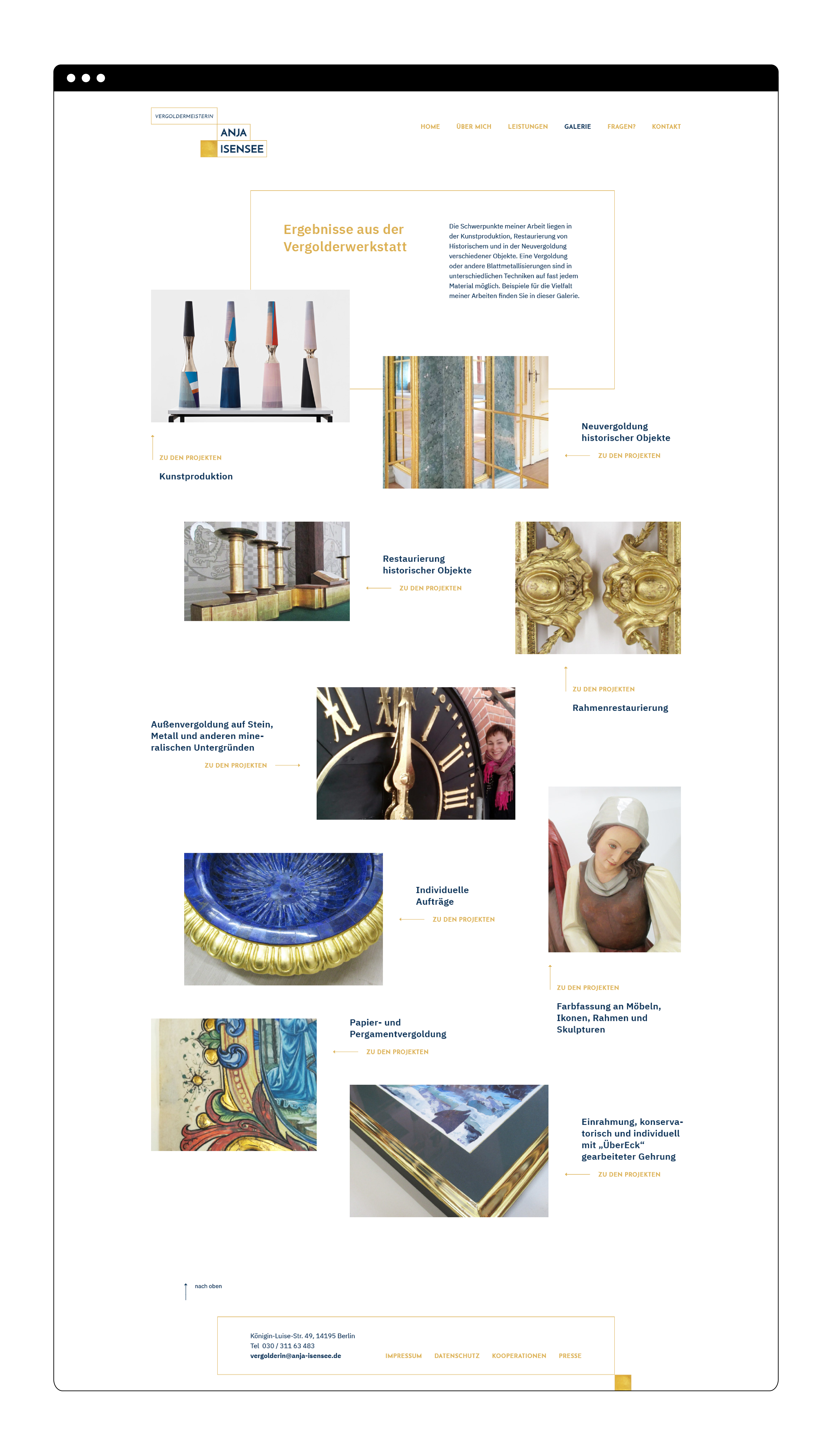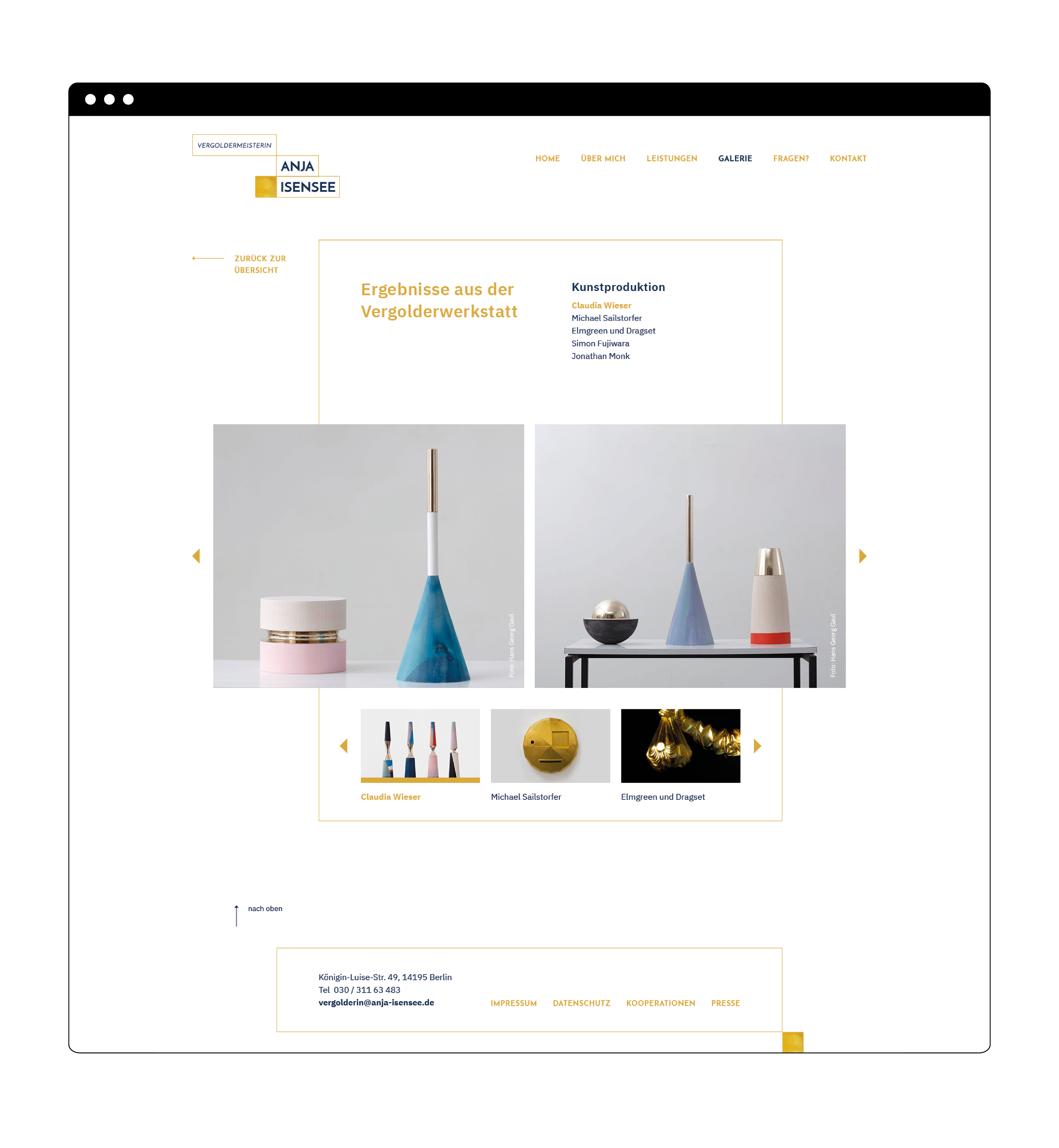 ⸺ Vergoldermeisterin Anja Isensee: Corporate Design, Webdesign