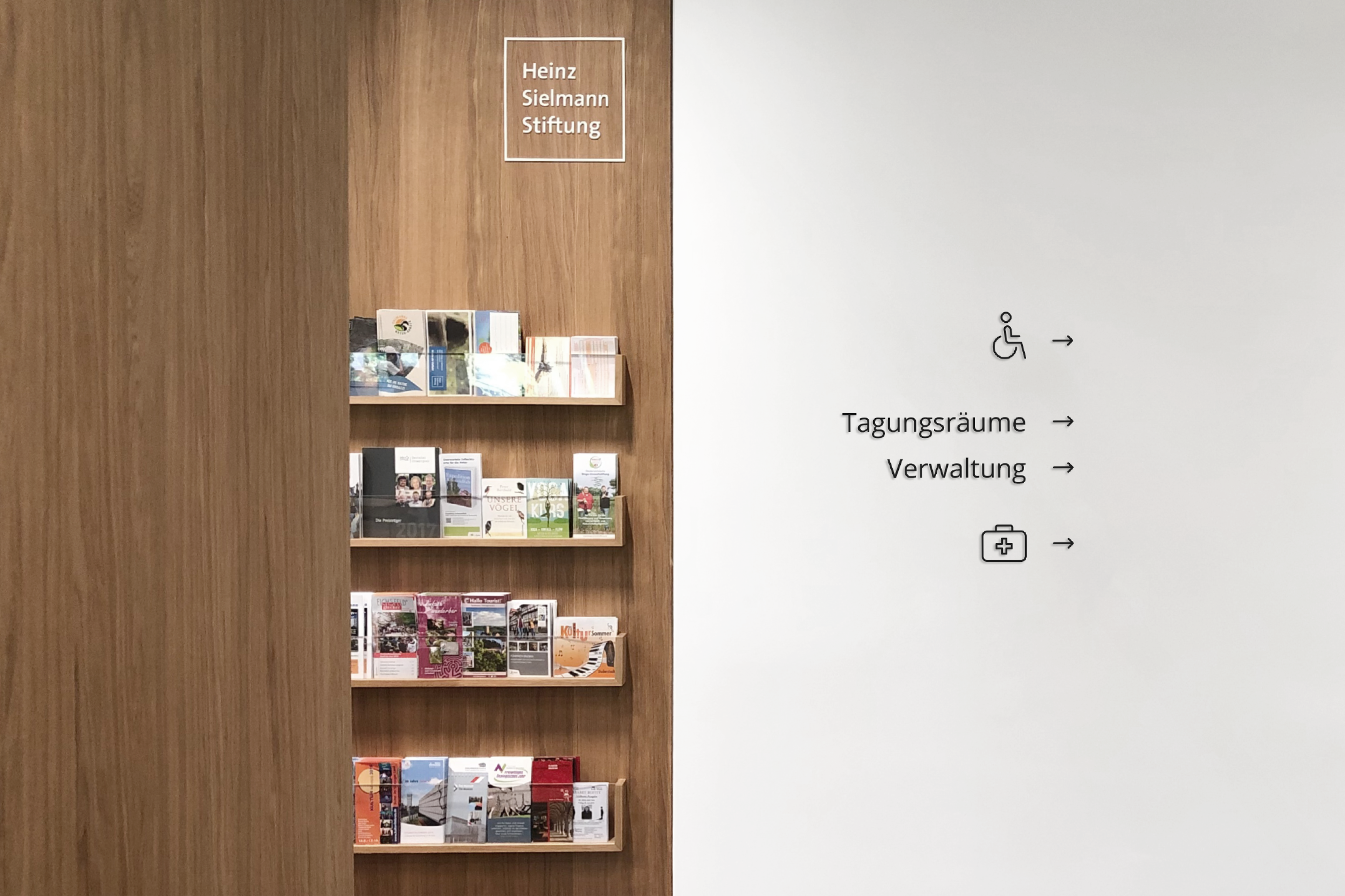 Das Orientierungssystem auf Gut Herbigshagen leitet die Besucher:innen des Stiftungssitzes der Heinz Sielmann Stifung durch das Naturerlebnishaus. Das zurückgenommene und klar strukturierte Leitsystem ordnet die Bereiche des Hauses, von den Ausstellungen bis hin zur Gastronomie, und sorgt hiermit für ein reibungsloses Besuchererlebnis.